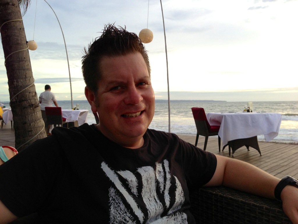 Our Villa, tucked away in a tiny Seminyak back street behind high bamboo camouflaged walls is expansive….open to let the cool breezes in, subtly lit, abutting the warmest pool and spa…ambience personified. A good choice Lynnie ‘n Steve who, by the way, have just toddled off to a Gym! Tough Mudder competition just 4 weeks away and they’re now in panic mode. Bless!