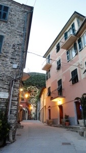 Tourists swamp the place by day but most disperse to the bigger villages in the eve leaving room for the dedicated, the locals and the lights of the restaurants lining the harbor to sparkle across water the color of ink.