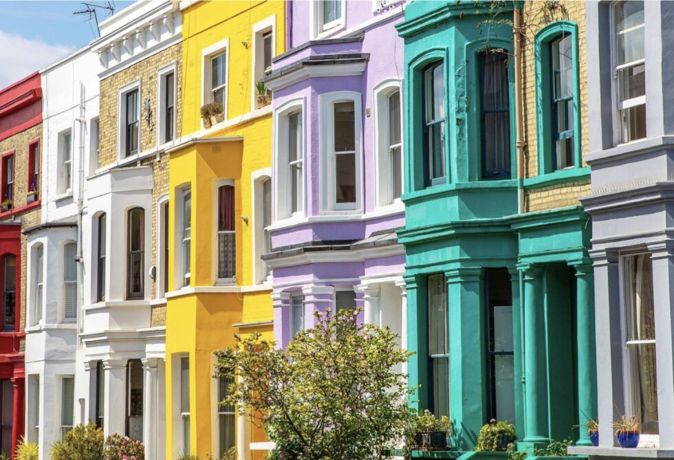 Start at the Portobello end for the dramatic trio: periwinkle, tomato red, and brilliant blue. Wander further along and the colours soften into dreamy pastels. When you need a recharge, pop into Ottolenghi (Ledbury Road) for pastries that should come with warning labels!