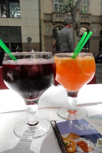 Sangrias on La Rambla, a popular pedestrian street, impressive but way overpriced, served by a rude, tourist jaded waiter. Sipping the big bowls while people watching the cruise ship exodus of chubby folk in three quarter length pants, sneakers and NYC t’shirts made the effort worthwhile.